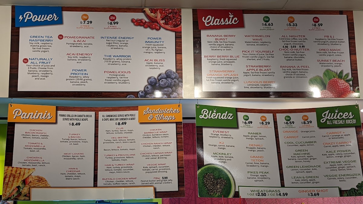 “ I love the kiwi kraze, intense energy (sugar free), & fruit flirtation. For food I like the wraps. ”